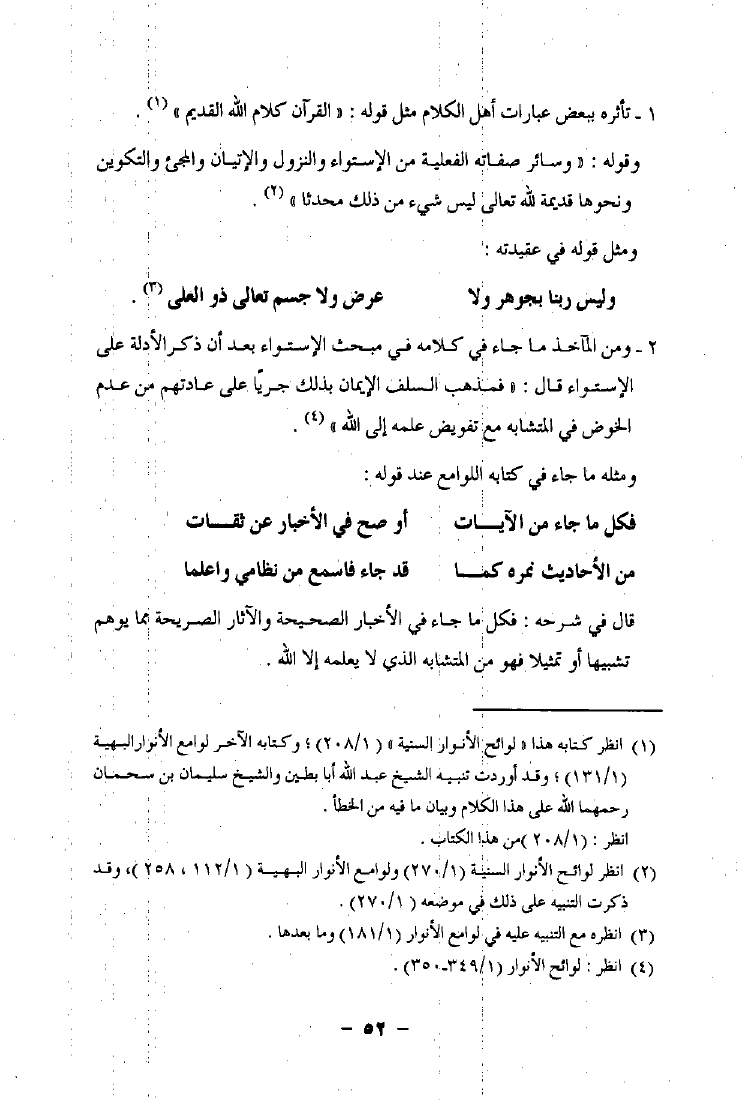 نام کتاب : لوائح الأنوار السنية ولواقح الأفكار السنية شرح قصيدة ابن أبي داود الحائية في عقيدة أهل الآثار السلفية نویسنده : محمد بن أحمد بن سالم بن سليمان السفاريني جلد : 1 صفحه : 52