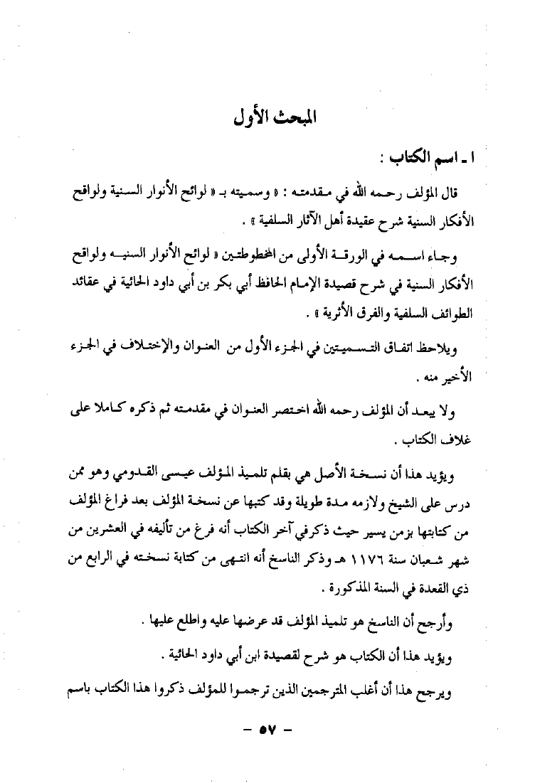 نام کتاب : لوائح الأنوار السنية ولواقح الأفكار السنية شرح قصيدة ابن أبي داود الحائية في عقيدة أهل الآثار السلفية نویسنده : محمد بن أحمد بن سالم بن سليمان السفاريني جلد : 1 صفحه : 57