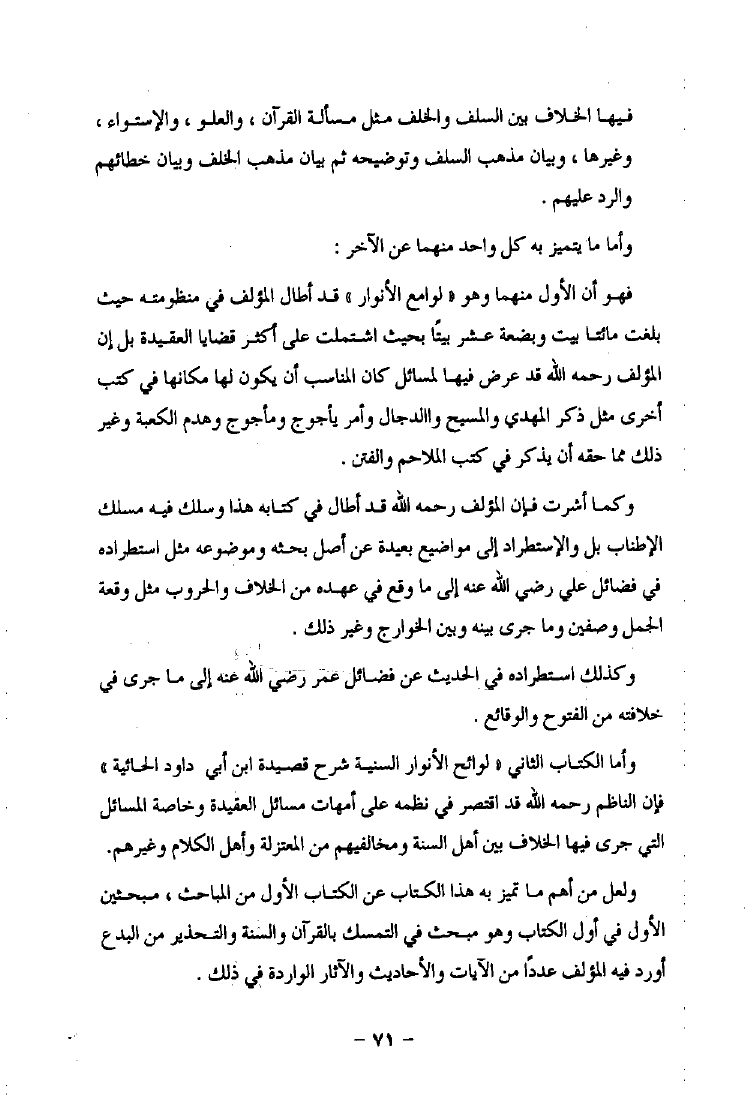 نام کتاب : لوائح الأنوار السنية ولواقح الأفكار السنية شرح قصيدة ابن أبي داود الحائية في عقيدة أهل الآثار السلفية نویسنده : محمد بن أحمد بن سالم بن سليمان السفاريني جلد : 1 صفحه : 71