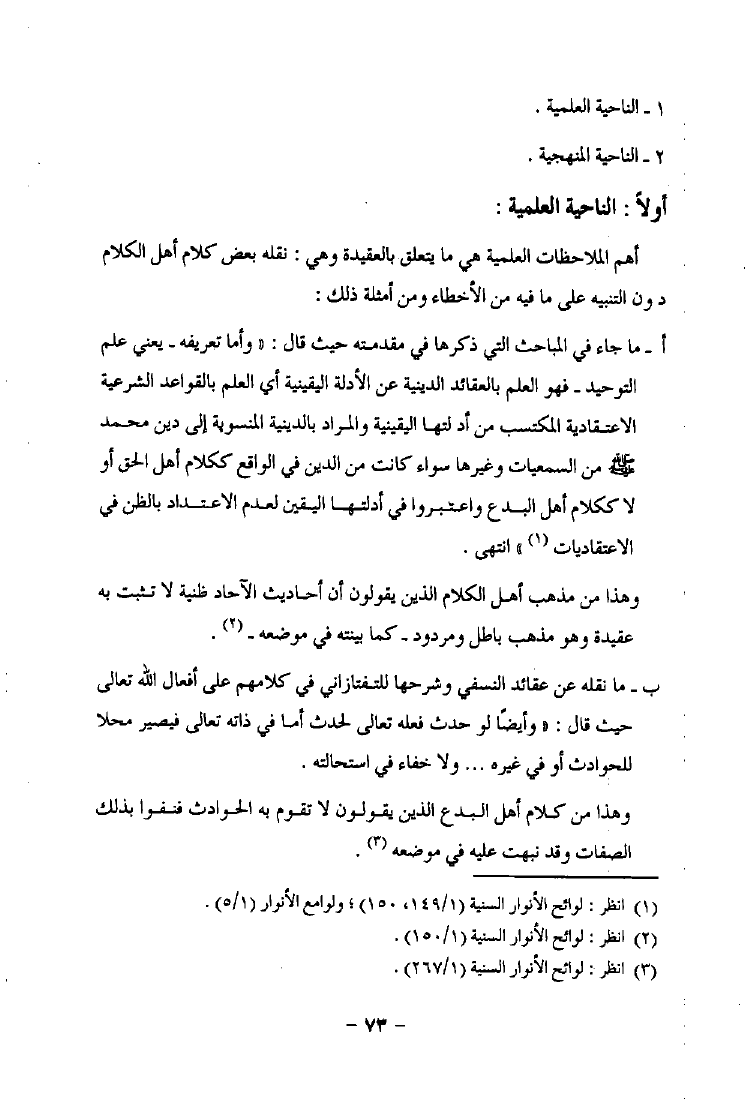 نام کتاب : لوائح الأنوار السنية ولواقح الأفكار السنية شرح قصيدة ابن أبي داود الحائية في عقيدة أهل الآثار السلفية نویسنده : محمد بن أحمد بن سالم بن سليمان السفاريني جلد : 1 صفحه : 73