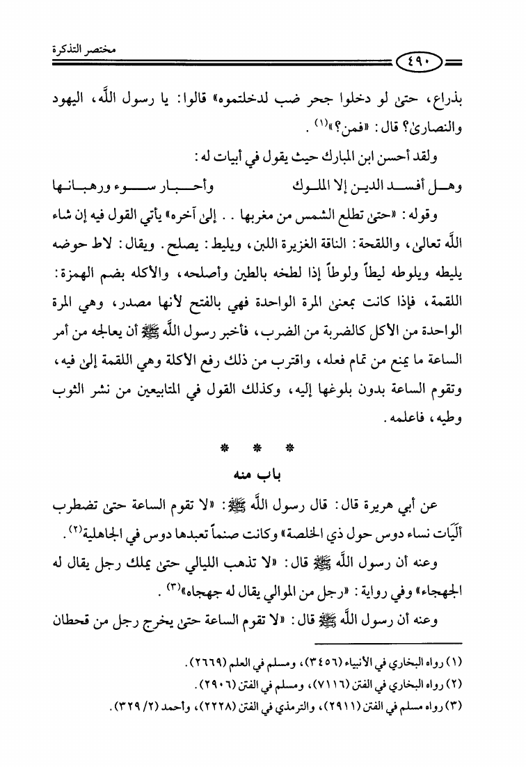مختصر التذكرة في أحوال الموتى وأمور الآخرة للإمام القرطبي