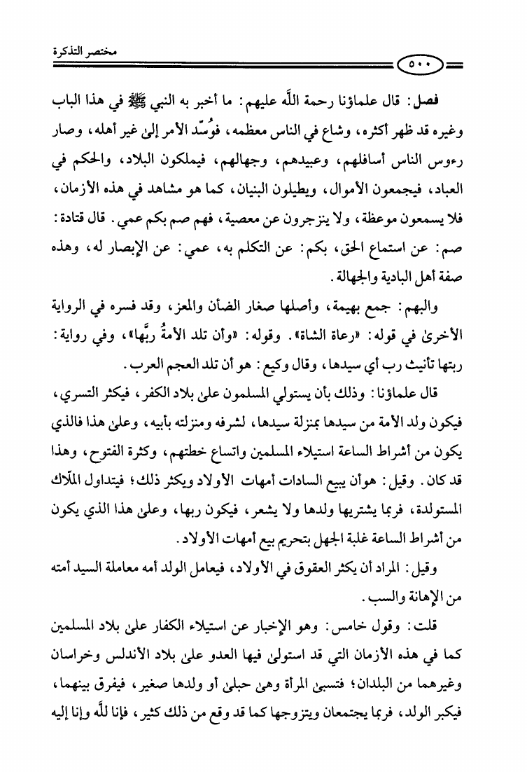 مختصر التذكرة في أحوال الموتى وأمور الآخرة للإمام القرطبي