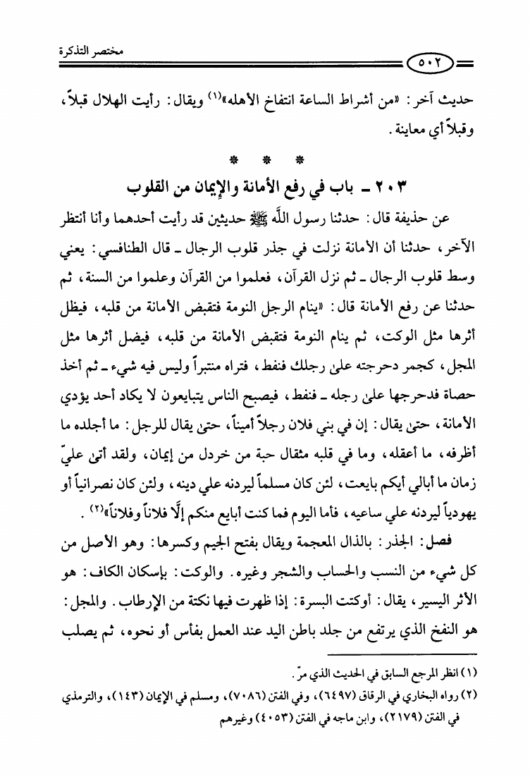 مختصر التذكرة في أحوال الموتى وأمور الآخرة للإمام القرطبي