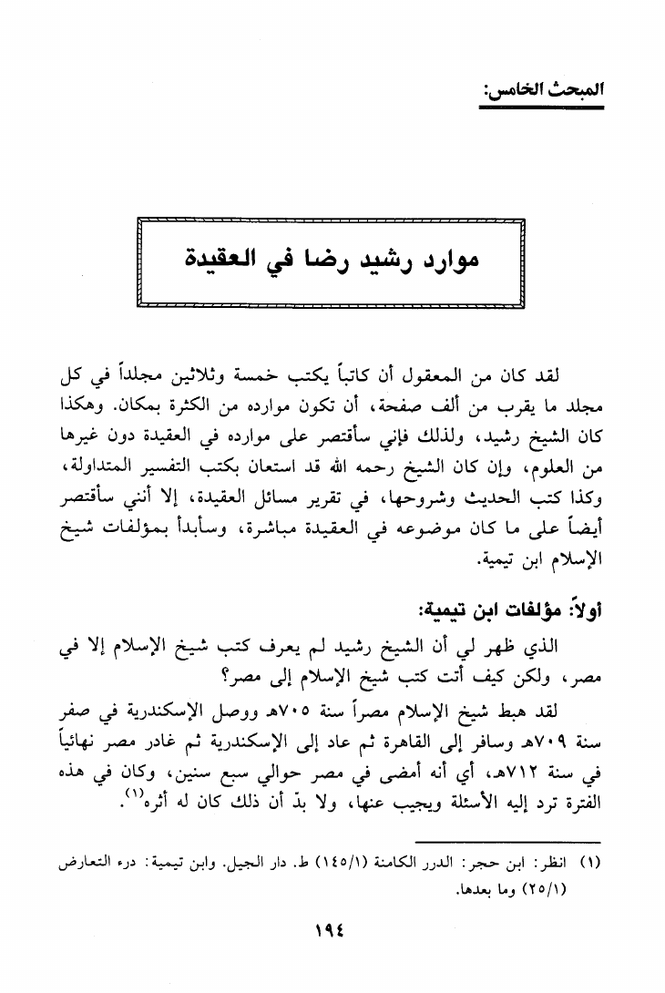 منهج الشيخ محمد رشيد رضا في العقيدة