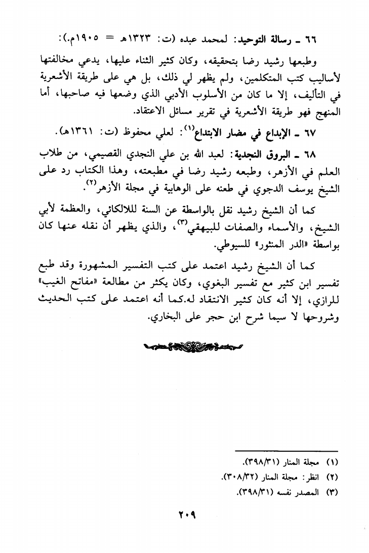 منهج الشيخ محمد رشيد رضا في العقيدة
