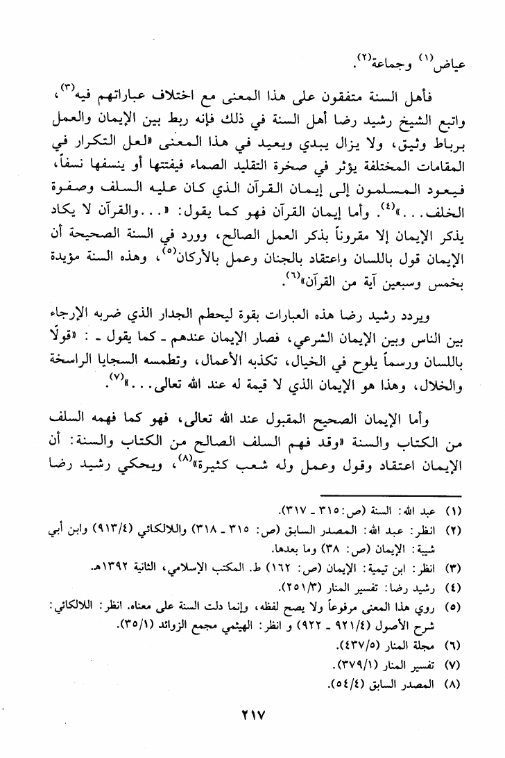 منهج الشيخ محمد رشيد رضا في العقيدة