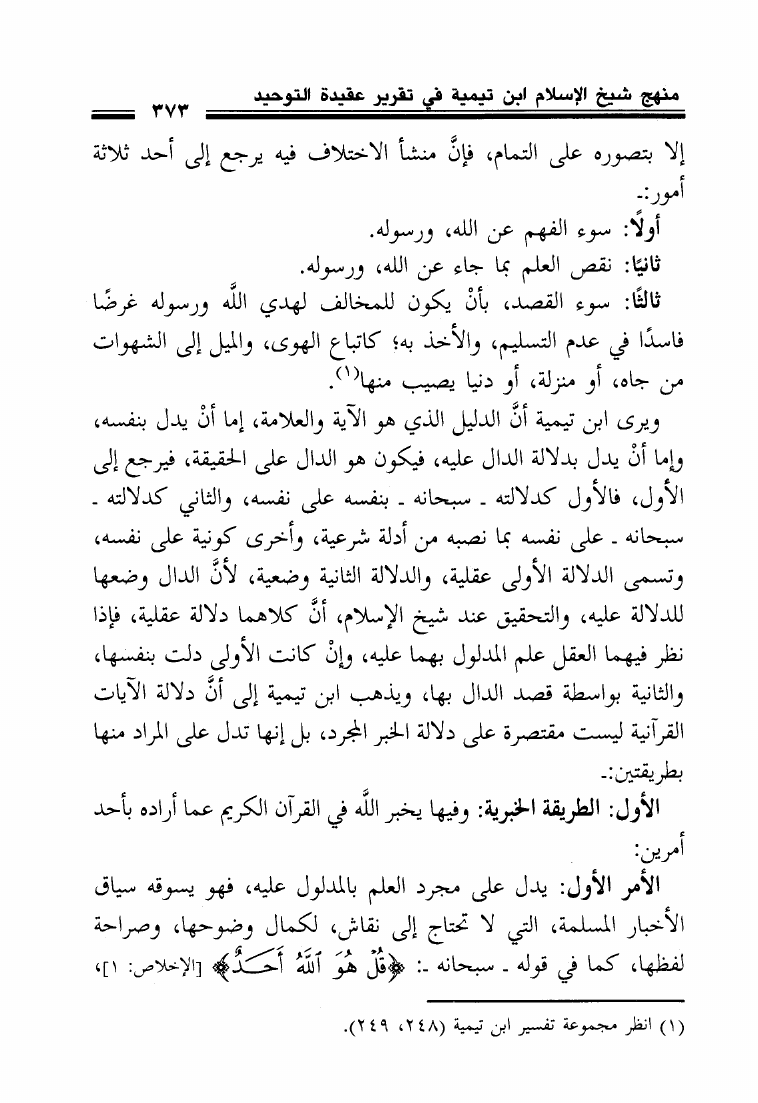 منهج شيخ الإسلام ابن تيمية في تقرير عقيدة التوحيد