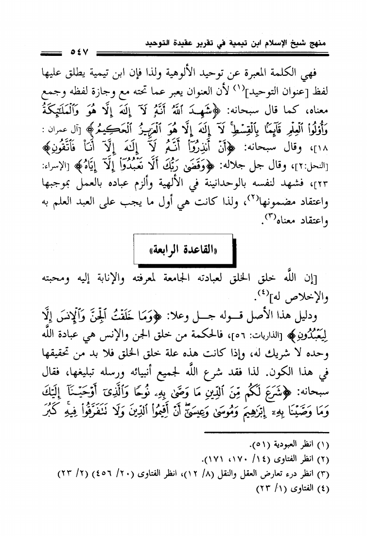 منهج شيخ الإسلام ابن تيمية في تقرير عقيدة التوحيد