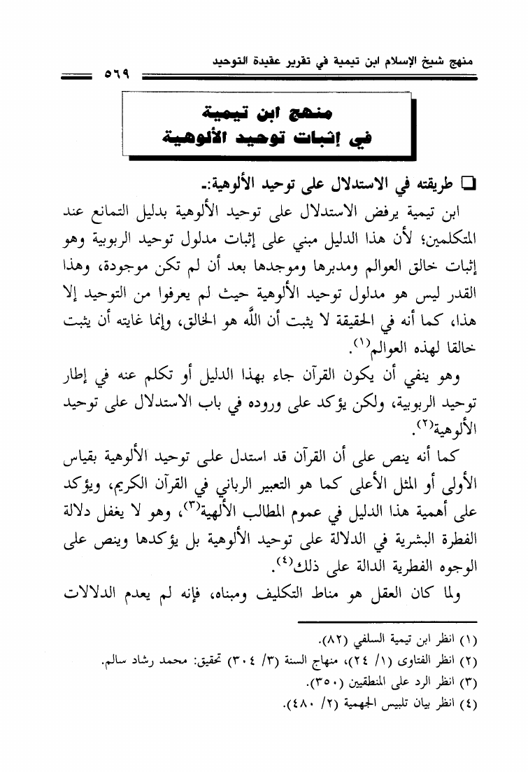 منهج شيخ الإسلام ابن تيمية في تقرير عقيدة التوحيد