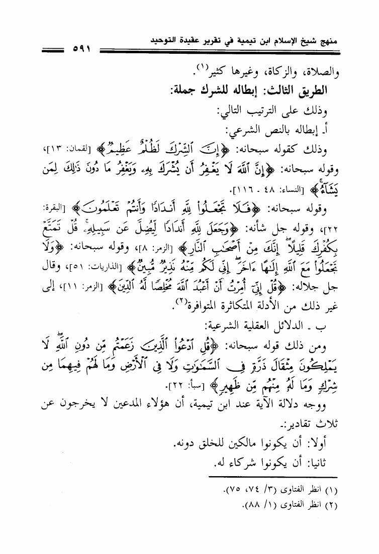 منهج شيخ الإسلام ابن تيمية في تقرير عقيدة التوحيد