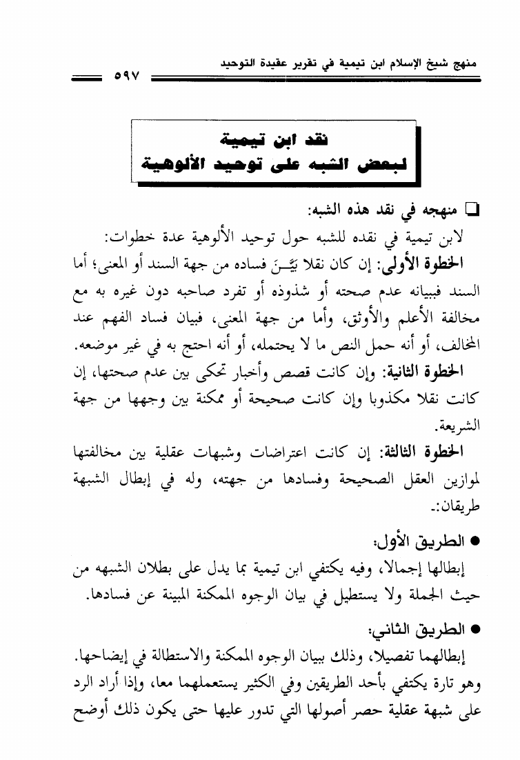 منهج شيخ الإسلام ابن تيمية في تقرير عقيدة التوحيد
