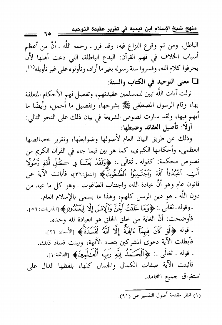 منهج شيخ الإسلام ابن تيمية في تقرير عقيدة التوحيد