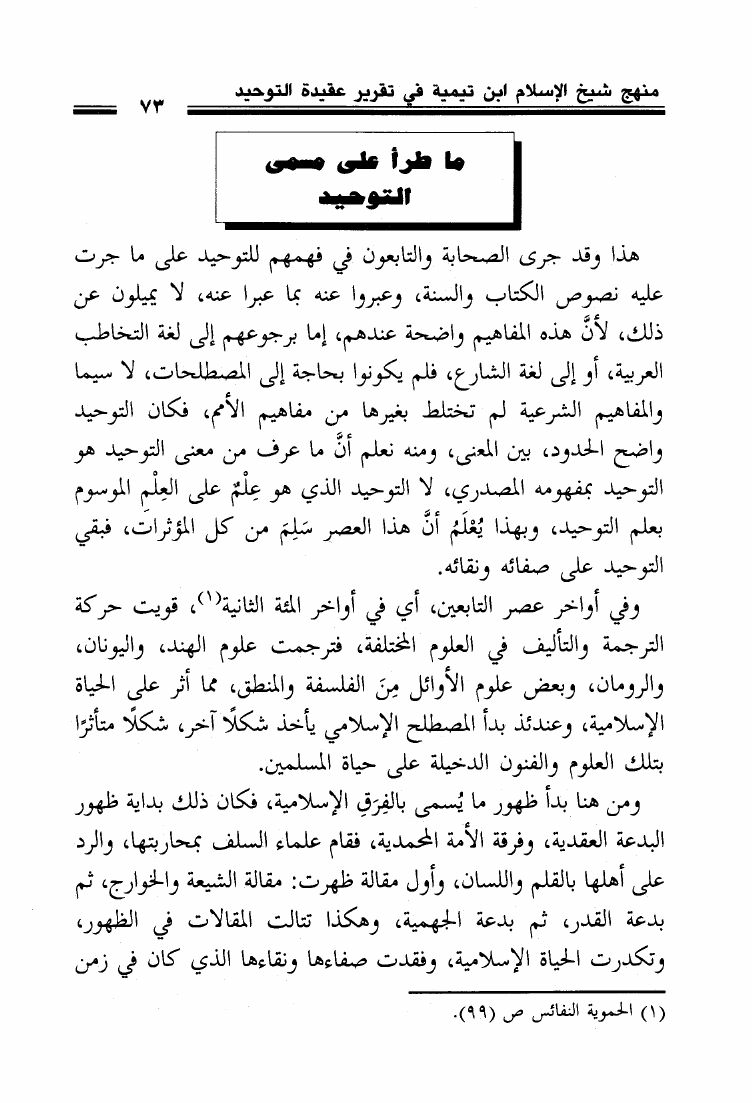 منهج شيخ الإسلام ابن تيمية في تقرير عقيدة التوحيد