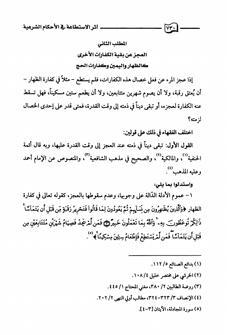 أثر الإستطاعة في الأحكام الشرعية
