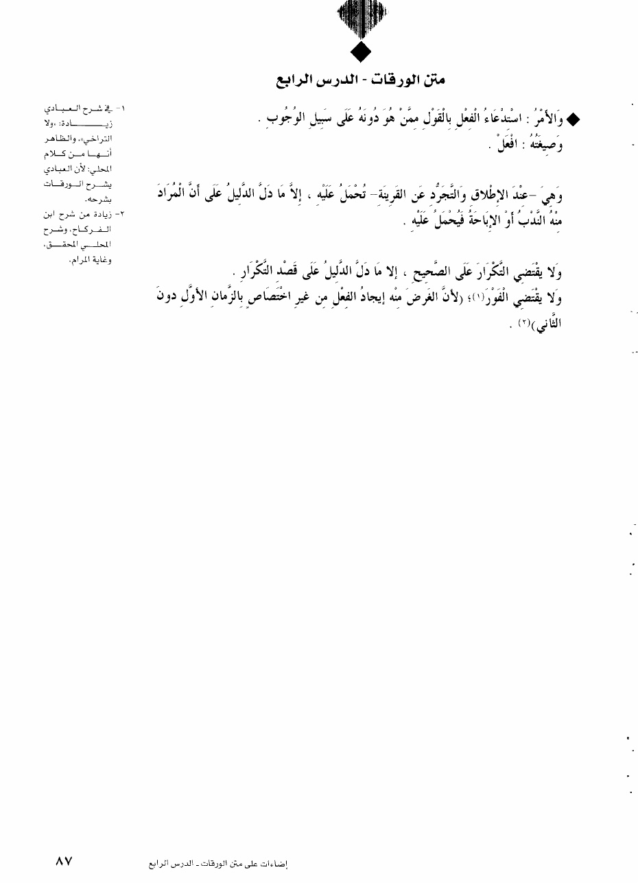 إضاءات على متن الورقات