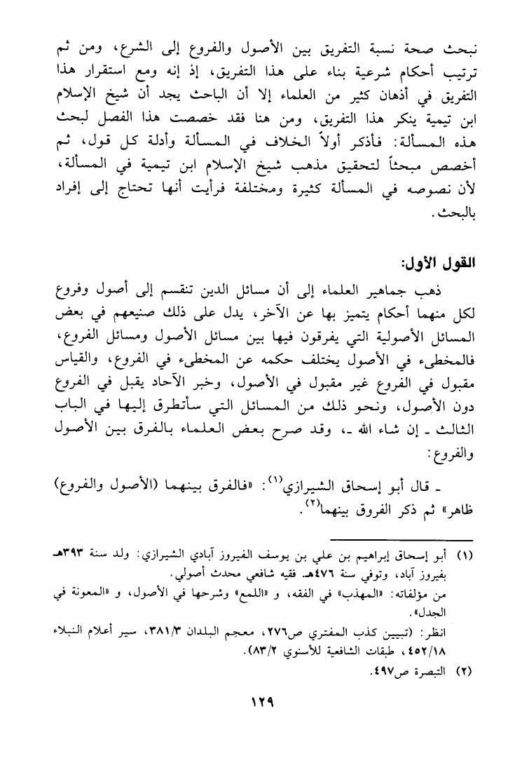 الأصول والفروع حقيقتهما والفرق بينهما والأحكام المتعلقة بهما