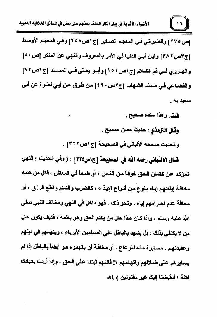 الأضواء الأثرية في بيان إنكار السلف بعضهم على بعض في المسائل الخلافية الفقهية