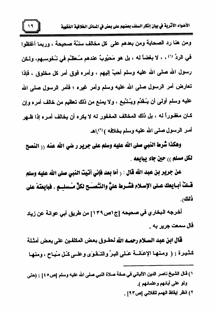 الأضواء الأثرية في بيان إنكار السلف بعضهم على بعض في المسائل الخلافية الفقهية