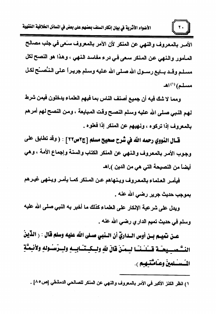 الأضواء الأثرية في بيان إنكار السلف بعضهم على بعض في المسائل الخلافية الفقهية