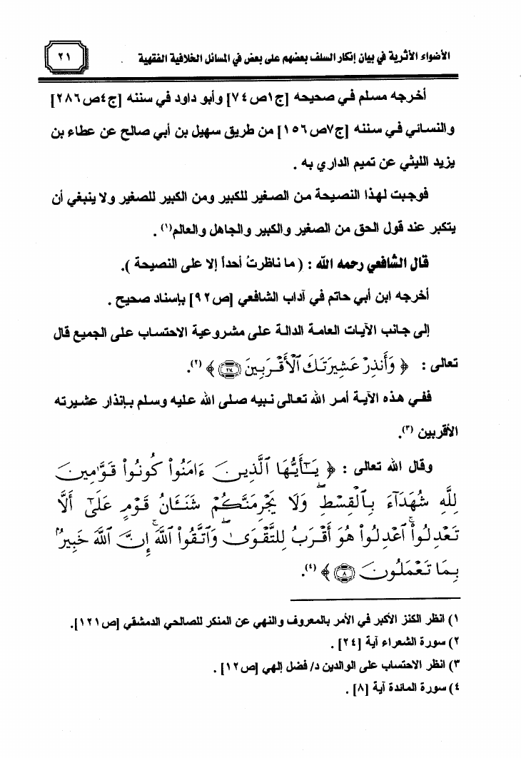 الأضواء الأثرية في بيان إنكار السلف بعضهم على بعض في المسائل الخلافية الفقهية