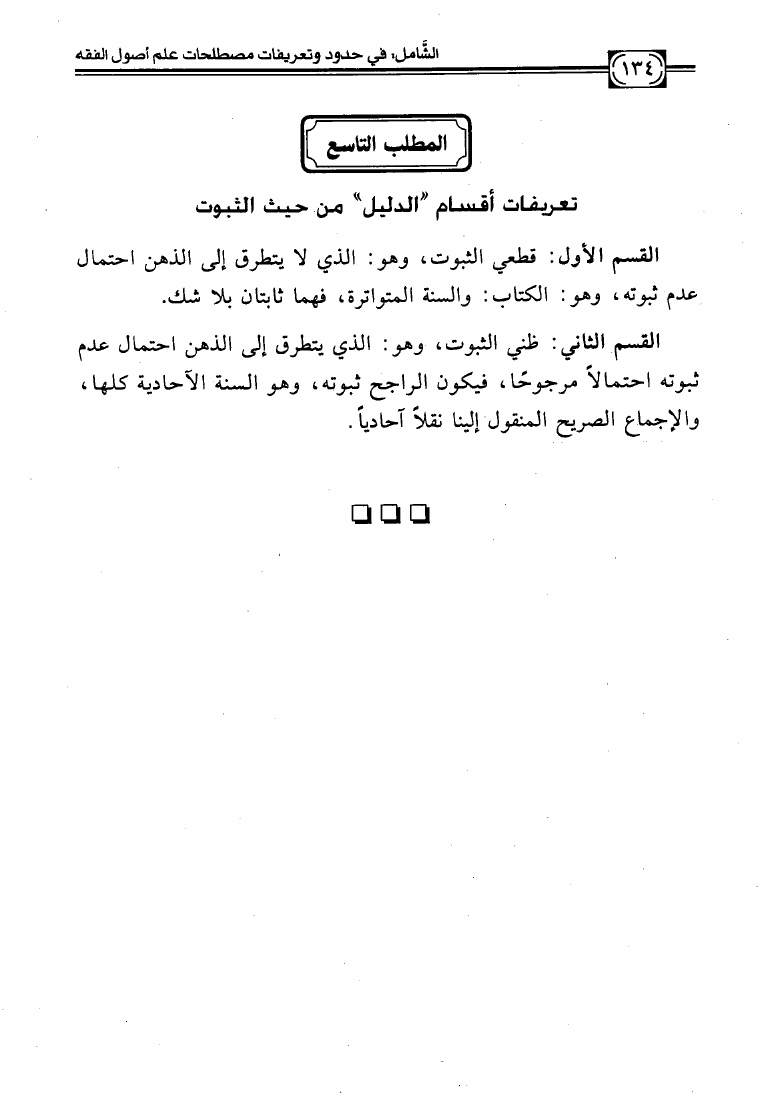 نام کتاب : الشامل في حدود وتعريفات مصطلحات علم أصول الفقه وشرح صحيحها وبيان ضعيفها والفروق بين المتشابه منها دراسة تأصيلية استقرائية نقدية نویسنده : عبد الكريم بن علي بن محمد النملة جلد : 1 صفحه : 134