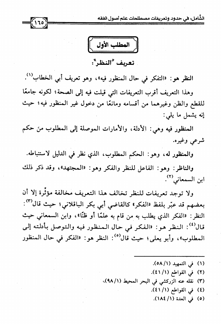 نام کتاب : الشامل في حدود وتعريفات مصطلحات علم أصول الفقه وشرح صحيحها وبيان ضعيفها والفروق بين المتشابه منها دراسة تأصيلية استقرائية نقدية نویسنده : عبد الكريم بن علي بن محمد النملة جلد : 1 صفحه : 165