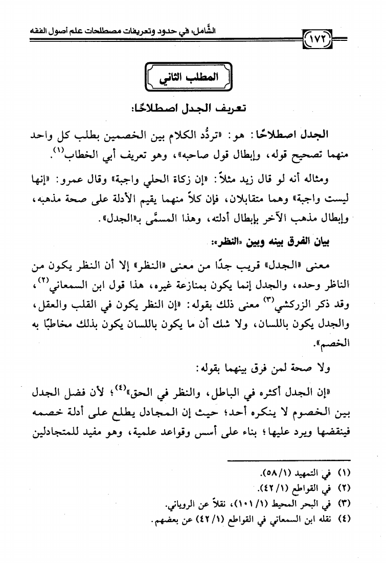 نام کتاب : الشامل في حدود وتعريفات مصطلحات علم أصول الفقه وشرح صحيحها وبيان ضعيفها والفروق بين المتشابه منها دراسة تأصيلية استقرائية نقدية نویسنده : عبد الكريم بن علي بن محمد النملة جلد : 1 صفحه : 172