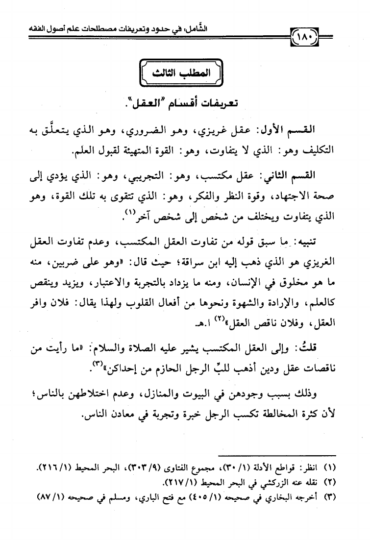 نام کتاب : الشامل في حدود وتعريفات مصطلحات علم أصول الفقه وشرح صحيحها وبيان ضعيفها والفروق بين المتشابه منها دراسة تأصيلية استقرائية نقدية نویسنده : عبد الكريم بن علي بن محمد النملة جلد : 1 صفحه : 180