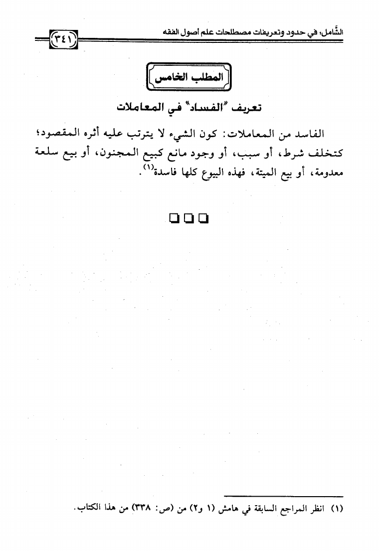 نام کتاب : الشامل في حدود وتعريفات مصطلحات علم أصول الفقه وشرح صحيحها وبيان ضعيفها والفروق بين المتشابه منها دراسة تأصيلية استقرائية نقدية نویسنده : عبد الكريم بن علي بن محمد النملة جلد : 1 صفحه : 341