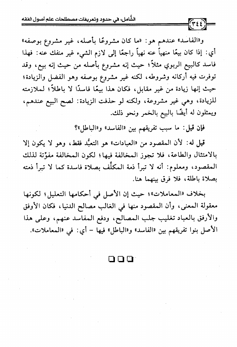 نام کتاب : الشامل في حدود وتعريفات مصطلحات علم أصول الفقه وشرح صحيحها وبيان ضعيفها والفروق بين المتشابه منها دراسة تأصيلية استقرائية نقدية نویسنده : عبد الكريم بن علي بن محمد النملة جلد : 1 صفحه : 344