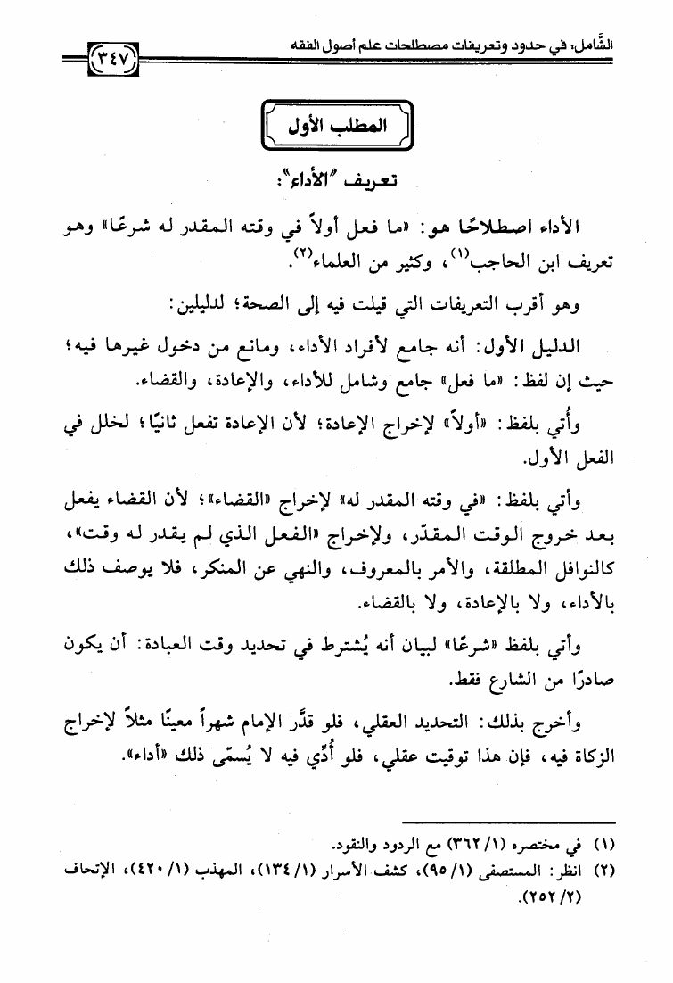 نام کتاب : الشامل في حدود وتعريفات مصطلحات علم أصول الفقه وشرح صحيحها وبيان ضعيفها والفروق بين المتشابه منها دراسة تأصيلية استقرائية نقدية نویسنده : عبد الكريم بن علي بن محمد النملة جلد : 1 صفحه : 347