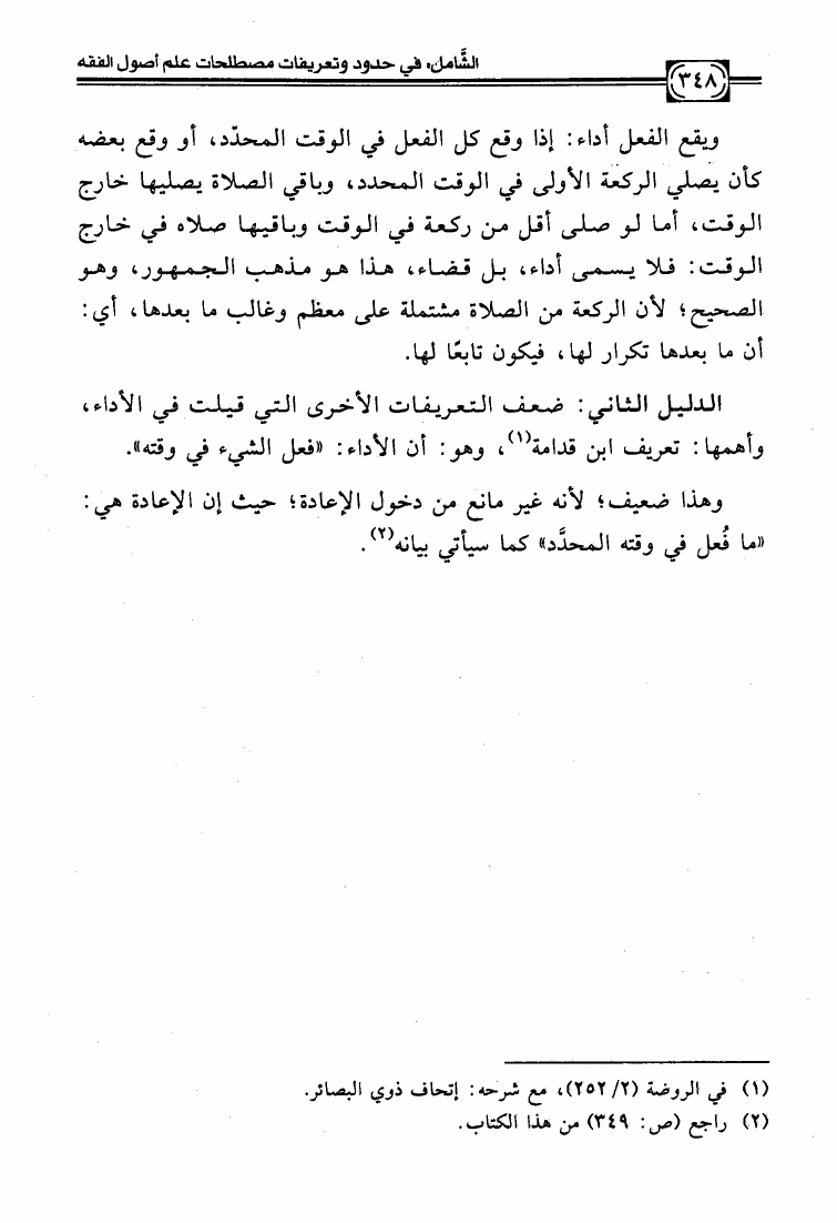 نام کتاب : الشامل في حدود وتعريفات مصطلحات علم أصول الفقه وشرح صحيحها وبيان ضعيفها والفروق بين المتشابه منها دراسة تأصيلية استقرائية نقدية نویسنده : عبد الكريم بن علي بن محمد النملة جلد : 1 صفحه : 348