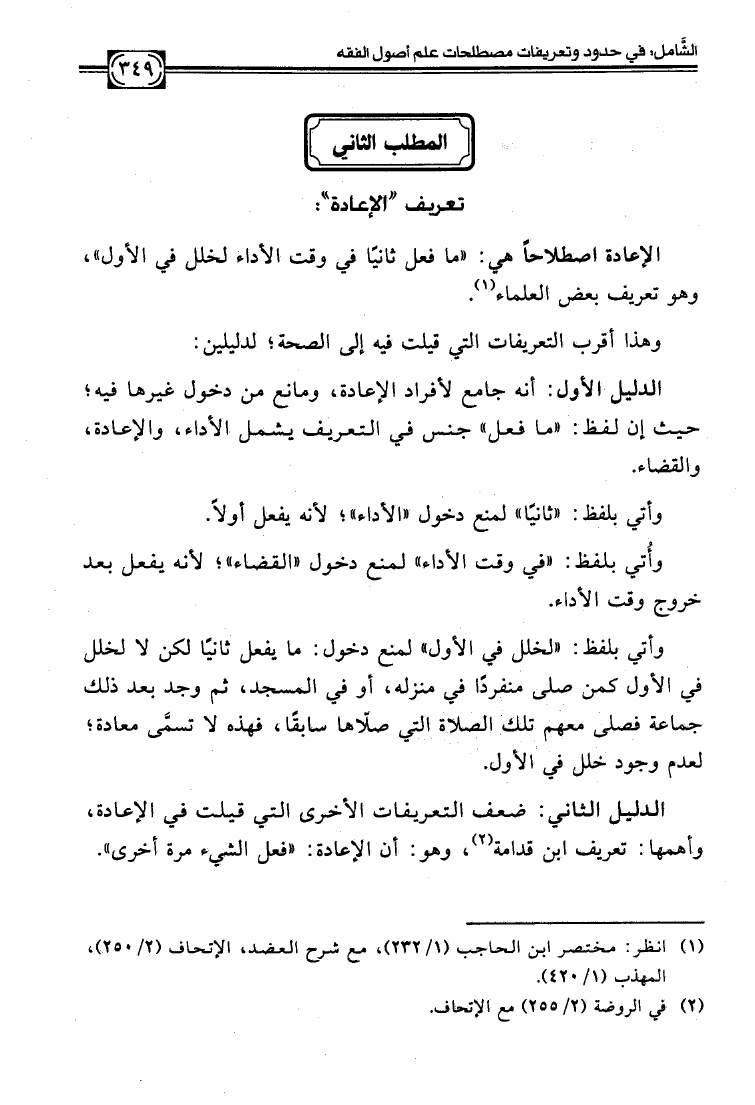 نام کتاب : الشامل في حدود وتعريفات مصطلحات علم أصول الفقه وشرح صحيحها وبيان ضعيفها والفروق بين المتشابه منها دراسة تأصيلية استقرائية نقدية نویسنده : عبد الكريم بن علي بن محمد النملة جلد : 1 صفحه : 349