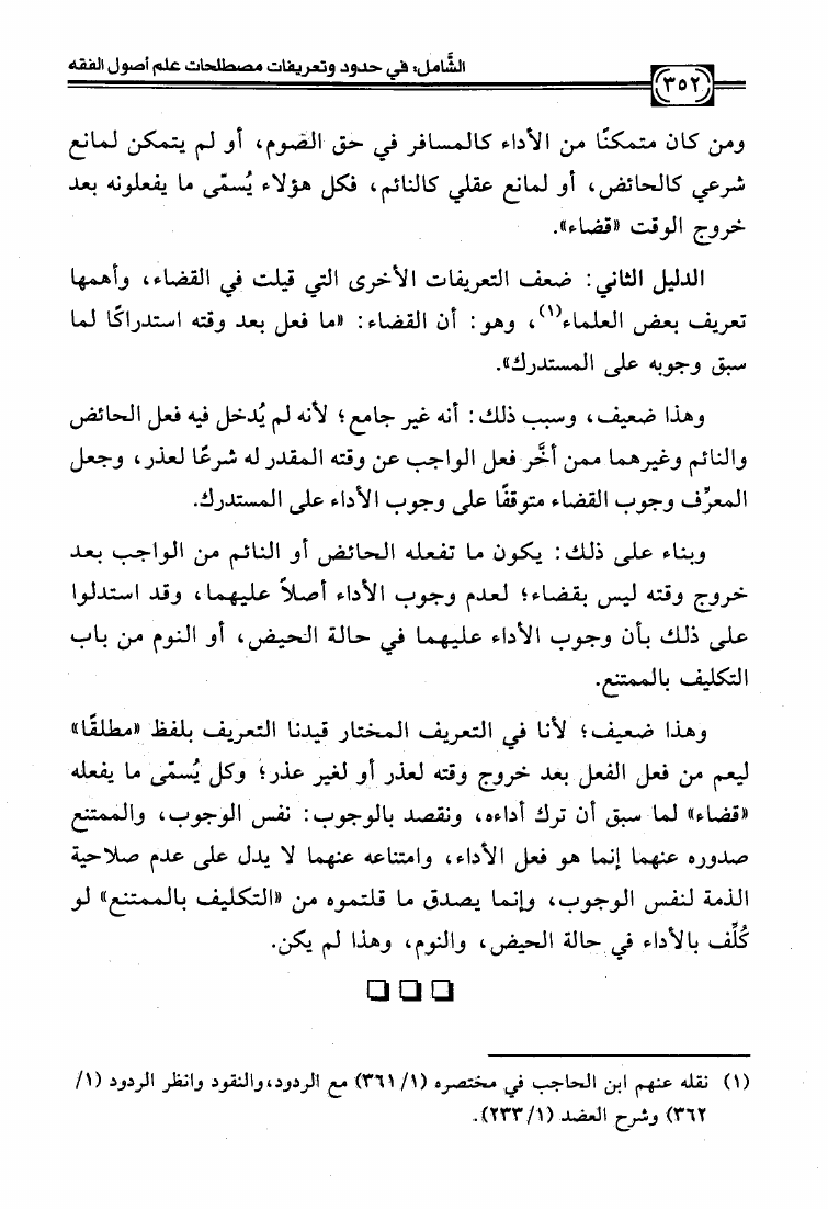 نام کتاب : الشامل في حدود وتعريفات مصطلحات علم أصول الفقه وشرح صحيحها وبيان ضعيفها والفروق بين المتشابه منها دراسة تأصيلية استقرائية نقدية نویسنده : عبد الكريم بن علي بن محمد النملة جلد : 1 صفحه : 352