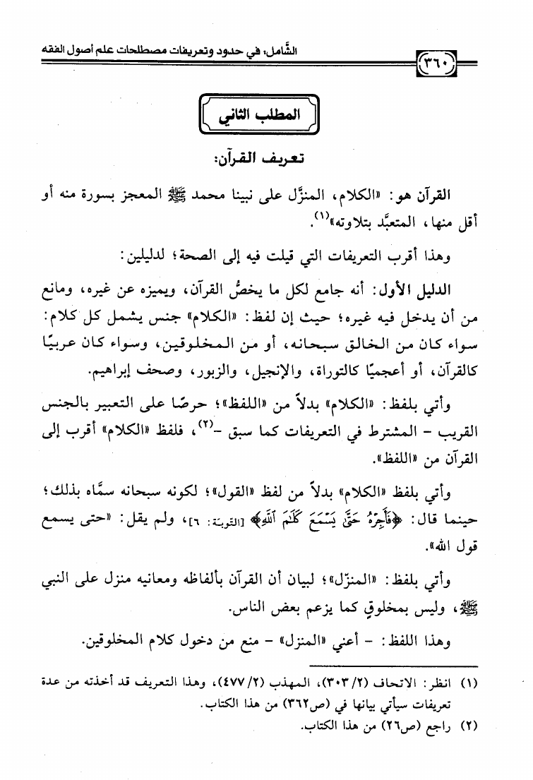 نام کتاب : الشامل في حدود وتعريفات مصطلحات علم أصول الفقه وشرح صحيحها وبيان ضعيفها والفروق بين المتشابه منها دراسة تأصيلية استقرائية نقدية نویسنده : عبد الكريم بن علي بن محمد النملة جلد : 1 صفحه : 360