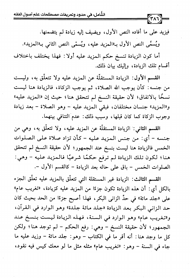 نام کتاب : الشامل في حدود وتعريفات مصطلحات علم أصول الفقه وشرح صحيحها وبيان ضعيفها والفروق بين المتشابه منها دراسة تأصيلية استقرائية نقدية نویسنده : عبد الكريم بن علي بن محمد النملة جلد : 1 صفحه : 386