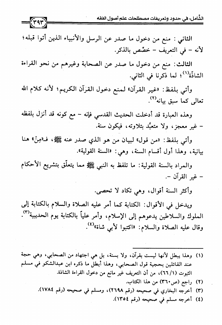 نام کتاب : الشامل في حدود وتعريفات مصطلحات علم أصول الفقه وشرح صحيحها وبيان ضعيفها والفروق بين المتشابه منها دراسة تأصيلية استقرائية نقدية نویسنده : عبد الكريم بن علي بن محمد النملة جلد : 1 صفحه : 393