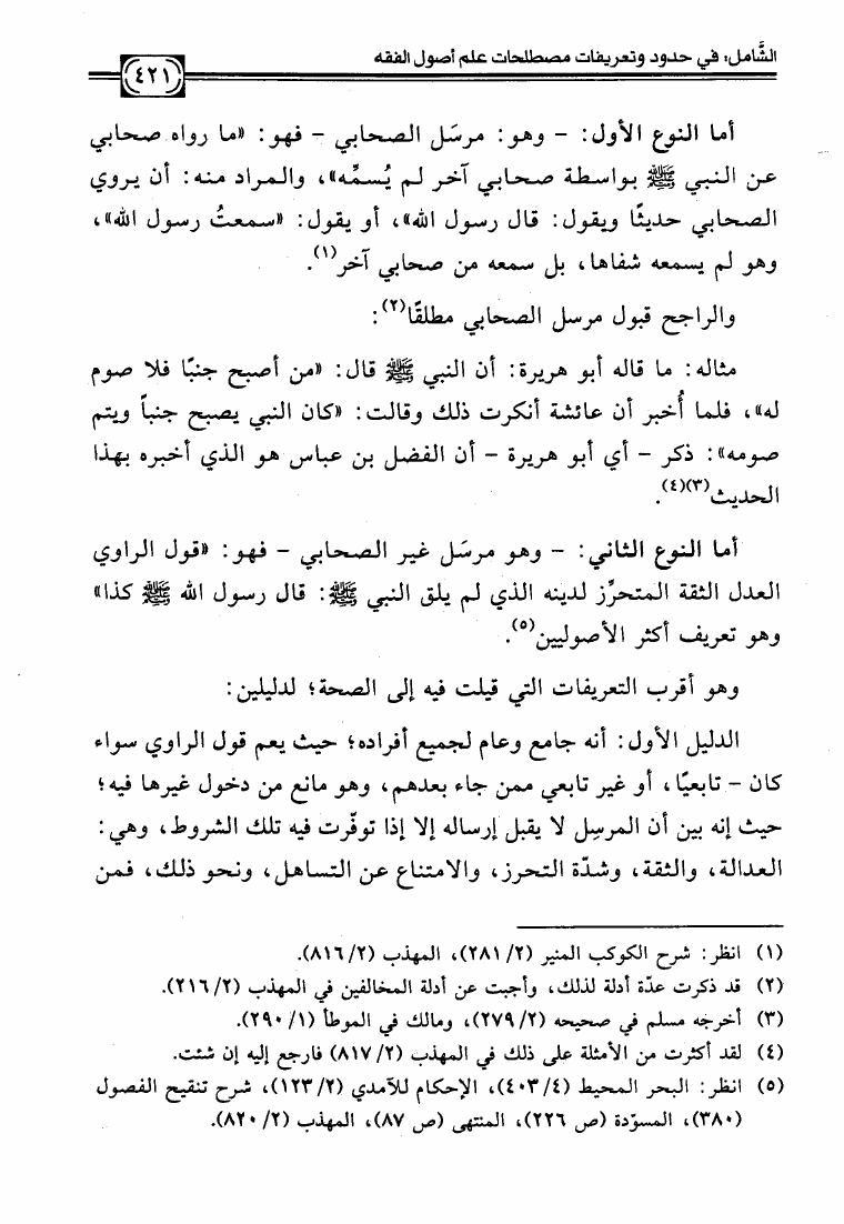نام کتاب : الشامل في حدود وتعريفات مصطلحات علم أصول الفقه وشرح صحيحها وبيان ضعيفها والفروق بين المتشابه منها دراسة تأصيلية استقرائية نقدية نویسنده : عبد الكريم بن علي بن محمد النملة جلد : 1 صفحه : 421