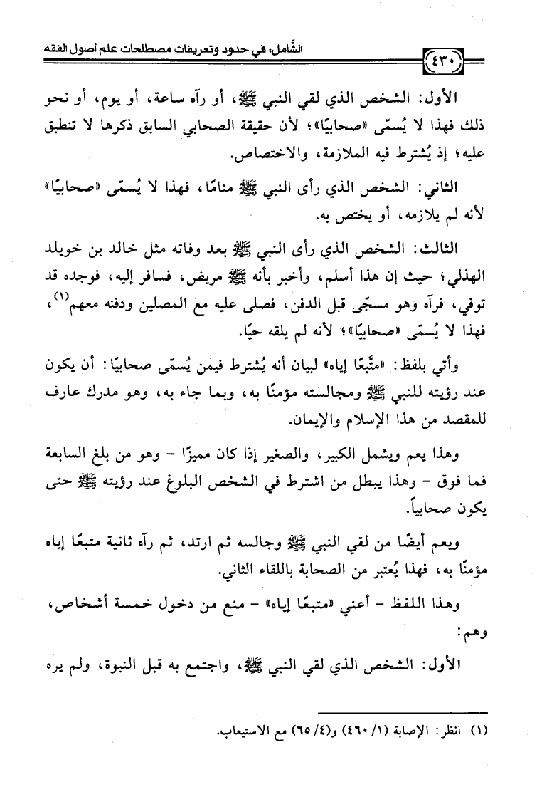 نام کتاب : الشامل في حدود وتعريفات مصطلحات علم أصول الفقه وشرح صحيحها وبيان ضعيفها والفروق بين المتشابه منها دراسة تأصيلية استقرائية نقدية نویسنده : عبد الكريم بن علي بن محمد النملة جلد : 1 صفحه : 430