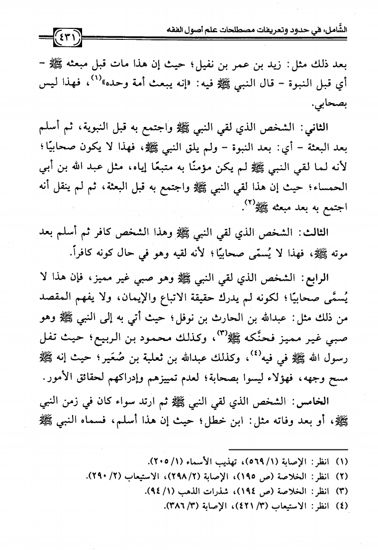نام کتاب : الشامل في حدود وتعريفات مصطلحات علم أصول الفقه وشرح صحيحها وبيان ضعيفها والفروق بين المتشابه منها دراسة تأصيلية استقرائية نقدية نویسنده : عبد الكريم بن علي بن محمد النملة جلد : 1 صفحه : 431