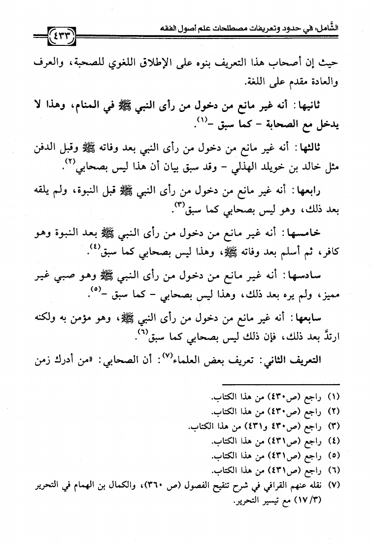 نام کتاب : الشامل في حدود وتعريفات مصطلحات علم أصول الفقه وشرح صحيحها وبيان ضعيفها والفروق بين المتشابه منها دراسة تأصيلية استقرائية نقدية نویسنده : عبد الكريم بن علي بن محمد النملة جلد : 1 صفحه : 433