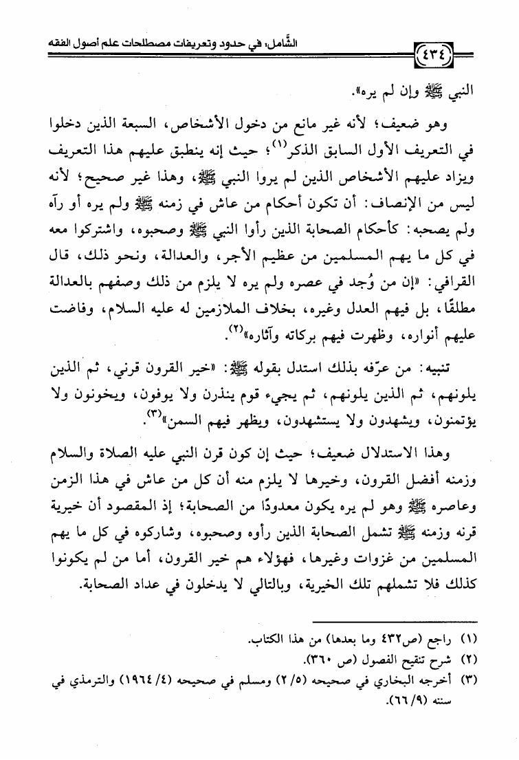 نام کتاب : الشامل في حدود وتعريفات مصطلحات علم أصول الفقه وشرح صحيحها وبيان ضعيفها والفروق بين المتشابه منها دراسة تأصيلية استقرائية نقدية نویسنده : عبد الكريم بن علي بن محمد النملة جلد : 1 صفحه : 434