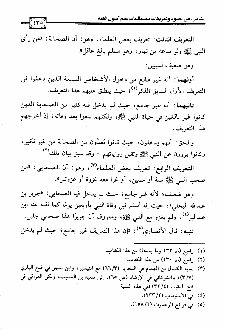 نام کتاب : الشامل في حدود وتعريفات مصطلحات علم أصول الفقه وشرح صحيحها وبيان ضعيفها والفروق بين المتشابه منها دراسة تأصيلية استقرائية نقدية نویسنده : عبد الكريم بن علي بن محمد النملة جلد : 1 صفحه : 435