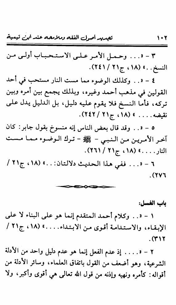 نام کتاب : تجديد أصول الفقه ومعالمه عند شيخ الإسلام ابن تيمية ويليه المنحى التطبيقي للقياس الأصولي وصلته بالإجتهاد المعاصر نویسنده : محمد خالد منصور جلد : 1 صفحه : 102