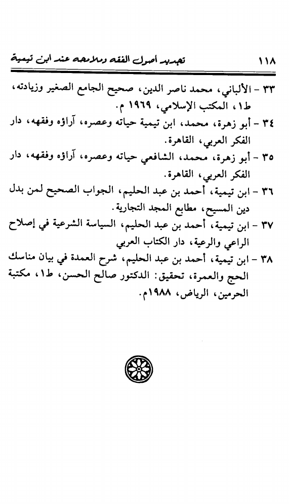 نام کتاب : تجديد أصول الفقه ومعالمه عند شيخ الإسلام ابن تيمية ويليه المنحى التطبيقي للقياس الأصولي وصلته بالإجتهاد المعاصر نویسنده : محمد خالد منصور جلد : 1 صفحه : 118