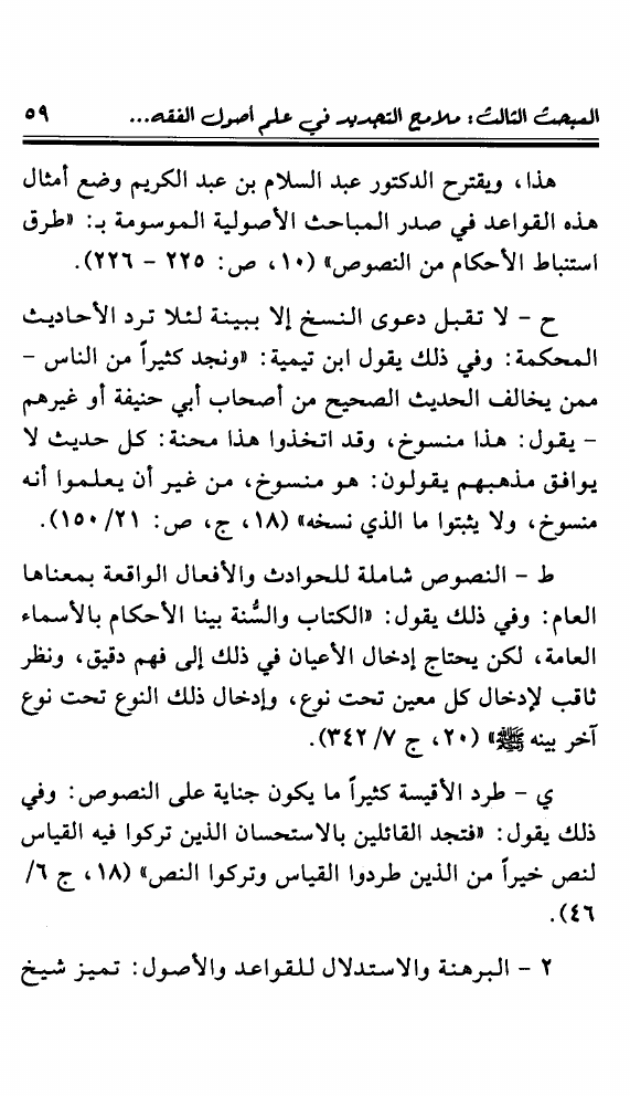 نام کتاب : تجديد أصول الفقه ومعالمه عند شيخ الإسلام ابن تيمية ويليه المنحى التطبيقي للقياس الأصولي وصلته بالإجتهاد المعاصر نویسنده : محمد خالد منصور جلد : 1 صفحه : 59