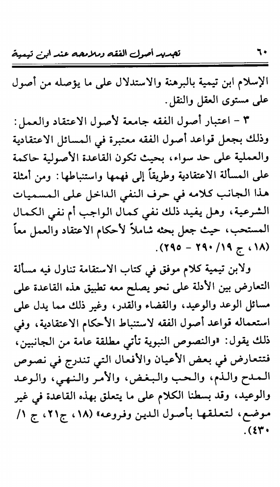 نام کتاب : تجديد أصول الفقه ومعالمه عند شيخ الإسلام ابن تيمية ويليه المنحى التطبيقي للقياس الأصولي وصلته بالإجتهاد المعاصر نویسنده : محمد خالد منصور جلد : 1 صفحه : 60
