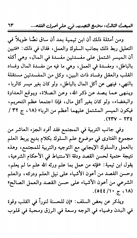 نام کتاب : تجديد أصول الفقه ومعالمه عند شيخ الإسلام ابن تيمية ويليه المنحى التطبيقي للقياس الأصولي وصلته بالإجتهاد المعاصر نویسنده : محمد خالد منصور جلد : 1 صفحه : 63