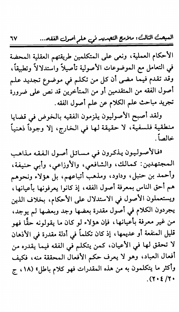 نام کتاب : تجديد أصول الفقه ومعالمه عند شيخ الإسلام ابن تيمية ويليه المنحى التطبيقي للقياس الأصولي وصلته بالإجتهاد المعاصر نویسنده : محمد خالد منصور جلد : 1 صفحه : 67