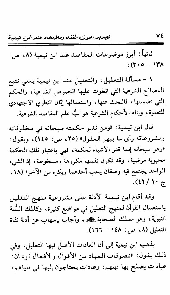 نام کتاب : تجديد أصول الفقه ومعالمه عند شيخ الإسلام ابن تيمية ويليه المنحى التطبيقي للقياس الأصولي وصلته بالإجتهاد المعاصر نویسنده : محمد خالد منصور جلد : 1 صفحه : 74